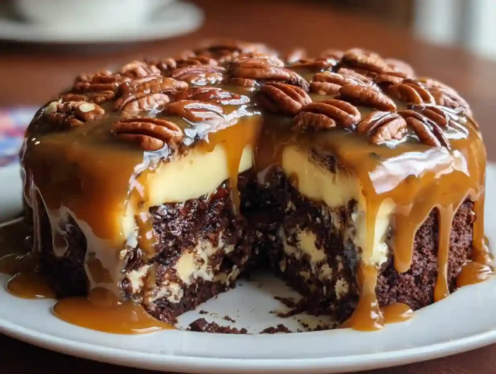 Turtle Caramel Cake marries the comfort of a classic German chocolate sponge with the luxurious sweetness of homemade caramel and the satisfying crunch of toasted pecans and chocolate chips. Inspired by the beloved turtle candy, each slice of this multimodal cake offers three distinct layers: a tender chocolate base, a molten caramel–nut filling, and a golden cake top. Whether you’re celebrating a birthday, hosting a potluck, or simply treating yourself, this recipe delivers an unforgettable finale with minimal fuss and maximum flavor.